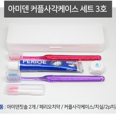 | 기타사항 | 1.국내자체생산고급칫솔모 사용, 치과에서 인정한 칫솔입니다. 2. 칫솔은 국내 제작 제품입니다. 3. 치약은 페리오치약을 사용합니다. 구성 :커플사각케이스, 칫솔2개, 치약, 치실, 2P 치간칫솔 100개 미만일경우 인쇄 판비 20000원입니다. |