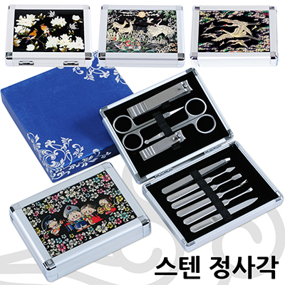 하모니 천연자개 알루미늄 스텐레스 10P 정사각 미용세트 C